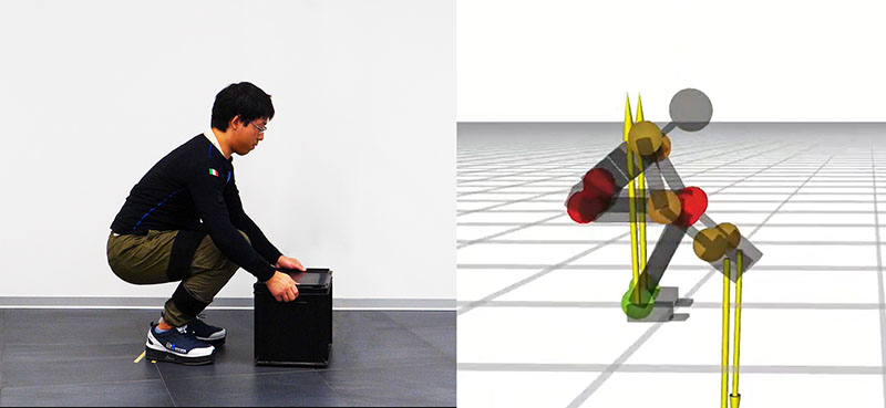 The inertial sensors are empowered with AI algorithms for human whole-body biomechanical estimation, and they collect motion tracking and kinematic data.